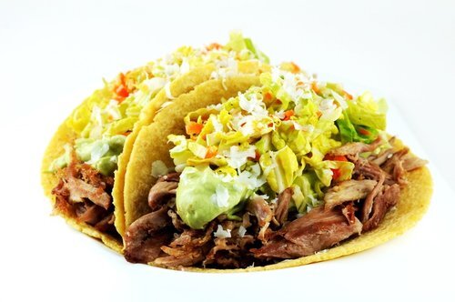 Shred the duck meat using two forks. Then heat a large sauté pan with about 4 TBS of the reserved duck fat and fry the shredded duck till the edges are nice and crispy. Place some of the meat in the tortilla top with avocado crema, cabbage, carrots and cottage cheese.