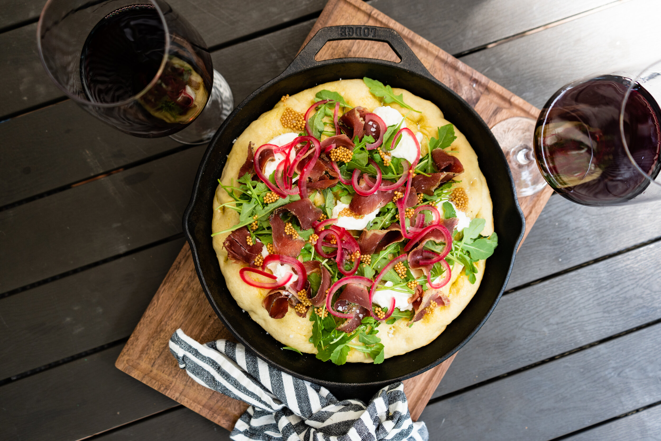 In our recipe, we’ll be substituting duck fat for the olive oil to give the bread a unique flavor. We’ll be topping the focaccia with duck prosciutto from your latest hunt, burrata cheese and arugula for fresh ingredients with complementary flavors. It makes for a great shareable appetizer or an indulgent meal for two.